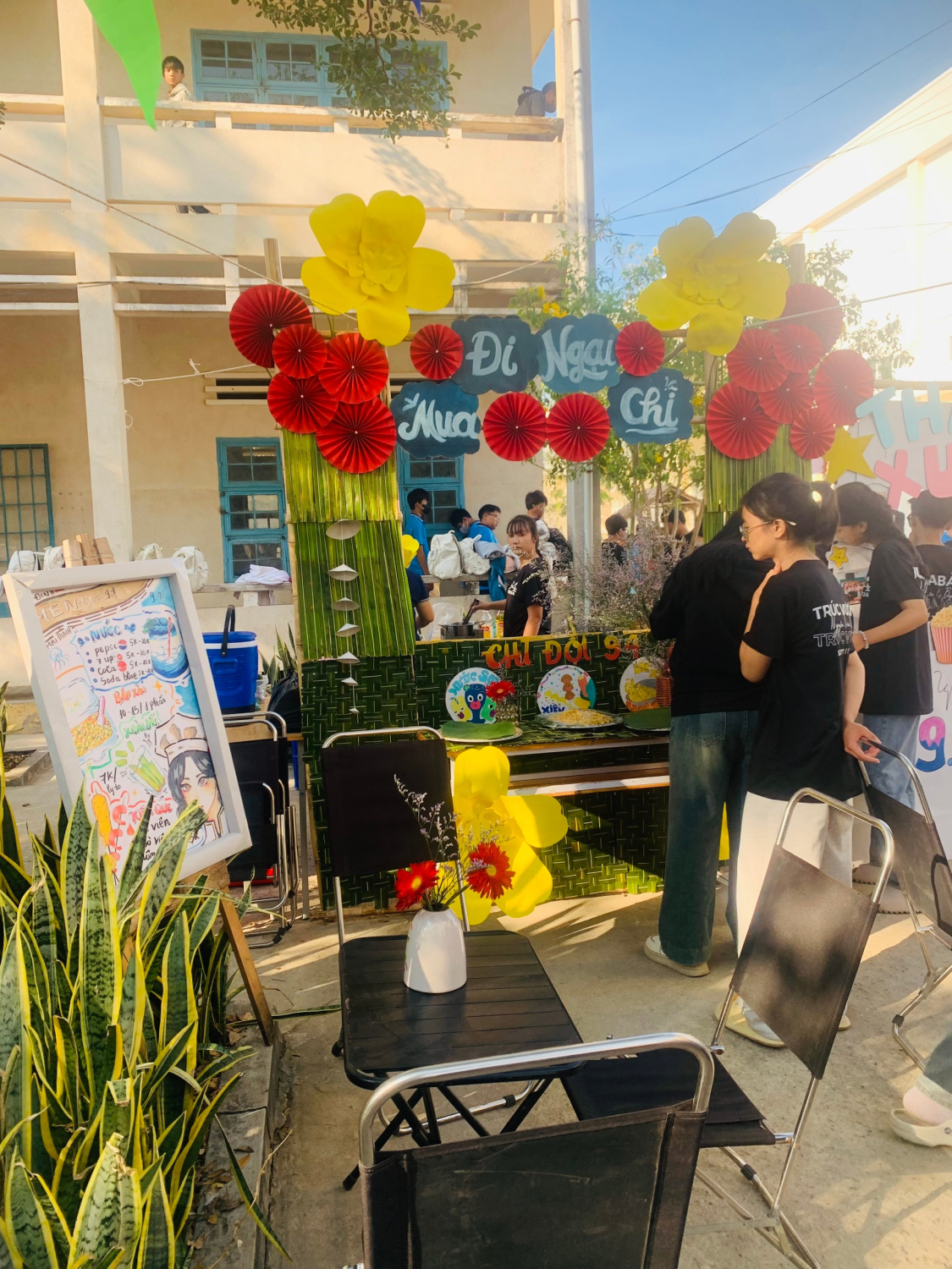 Ngay từ sáng sớm, khuôn viên nhà trường đã trở nên rộn ràng với sự chuẩn bị chu đáo của các gian hàng đến từ các lớp. Mỗi gian hàng được trang trí đẹp mắt, mang màu sắc riêng, giới thiệu nhiều món ăn phong phú như các món truyền thống, món ăn vặt, thức uống giải khát… đảm bảo tiêu chí ngon – sạch – an toàn. Các em học sinh đã thể hiện tinh thần hợp tác, phân công nhiệm vụ rõ ràng từ khâu chuẩn bị nguyên liệu, chế biến đến giới thiệu và phục vụ khách.