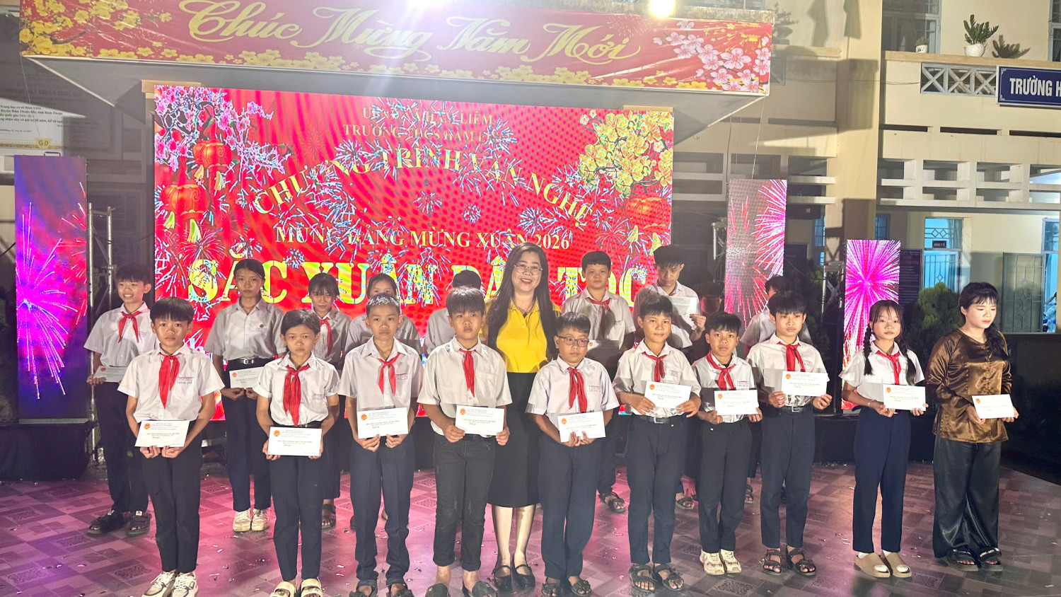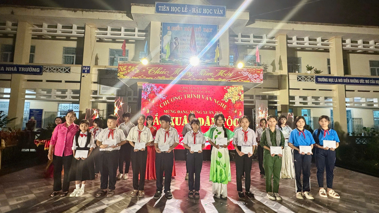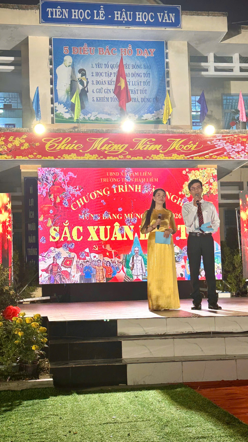 Trong không khí rộn ràng những ngày giáp Tết Bính Ngọ 2026, tối ngày 07/02/2026, Trường THCS Hàm Liêm đã tổ chức thành công đêm văn nghệ với chủ đề “Sắc Xuân Dân Tộc” – một chương trình nghệ thuật đặc sắc, ý nghĩa, đậm đà bản sắc dân tộc, hướng đến kỷ niệm 96 năm Ngày thành lập Đảng Cộng sản Việt Nam (03/02/1930 – 03/02/2026), chào mừng thành công của Đại hội đại biểu toàn quốc lần thứ XIV của Đảng, và chào đón mùa xuân mới Bính Ngọ trong niềm tin, tự hào và khát vọng.