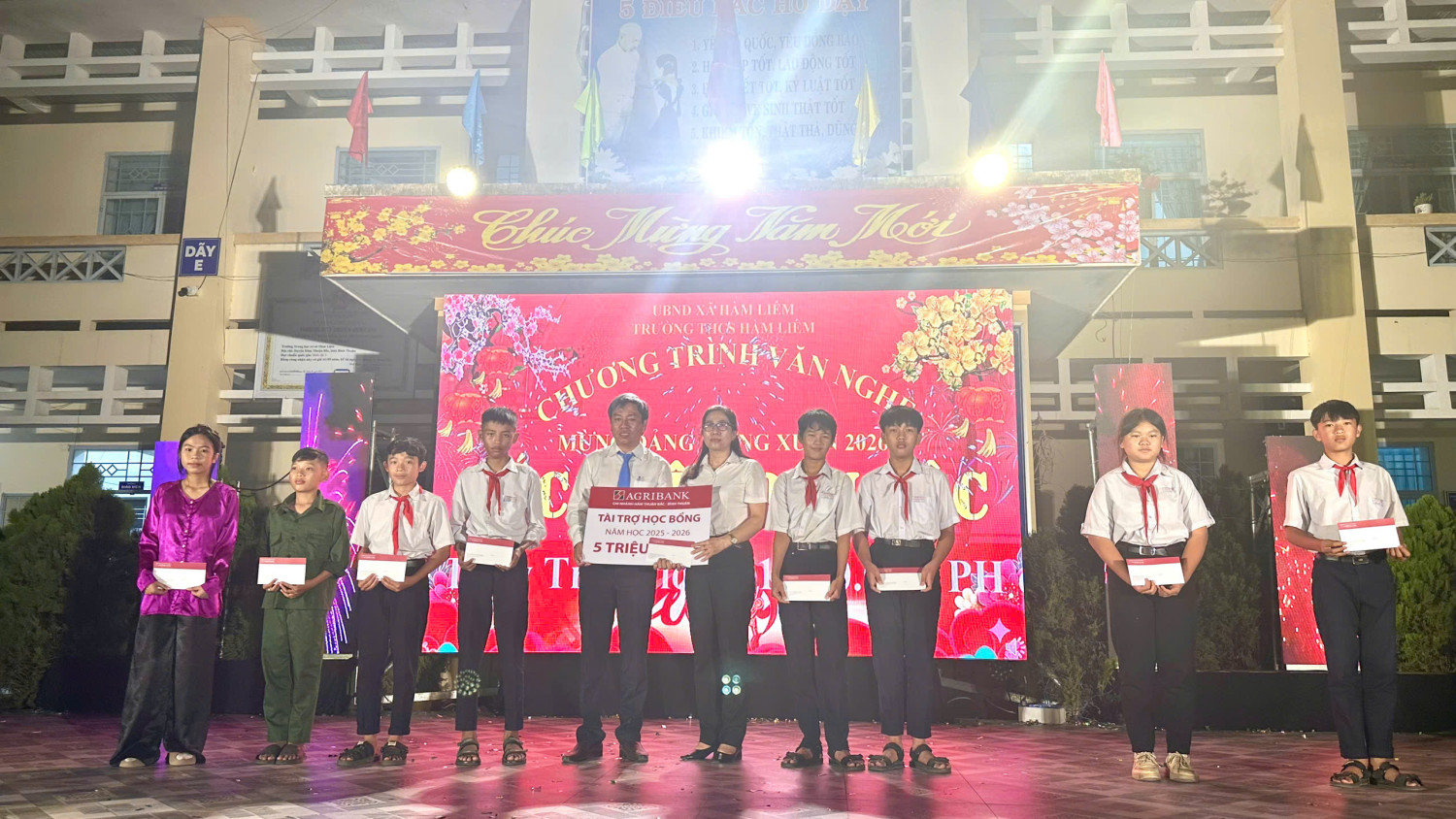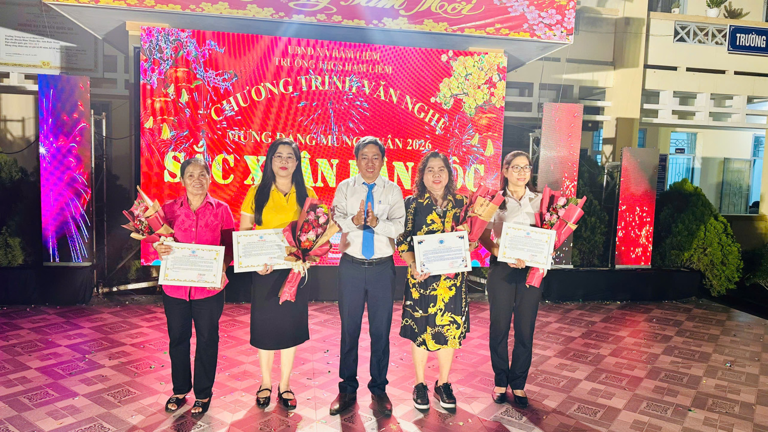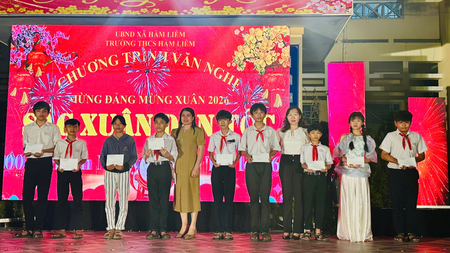 Trong không khí rộn ràng những ngày giáp Tết Bính Ngọ 2026, tối ngày 07/02/2026, Trường THCS Hàm Liêm đã tổ chức thành công đêm văn nghệ với chủ đề “Sắc Xuân Dân Tộc” – một chương trình nghệ thuật đặc sắc, ý nghĩa, đậm đà bản sắc dân tộc, hướng đến kỷ niệm 96 năm Ngày thành lập Đảng Cộng sản Việt Nam (03/02/1930 – 03/02/2026), chào mừng thành công của Đại hội đại biểu toàn quốc lần thứ XIV của Đảng, và chào đón mùa xuân mới Bính Ngọ trong niềm tin, tự hào và khát vọng.
