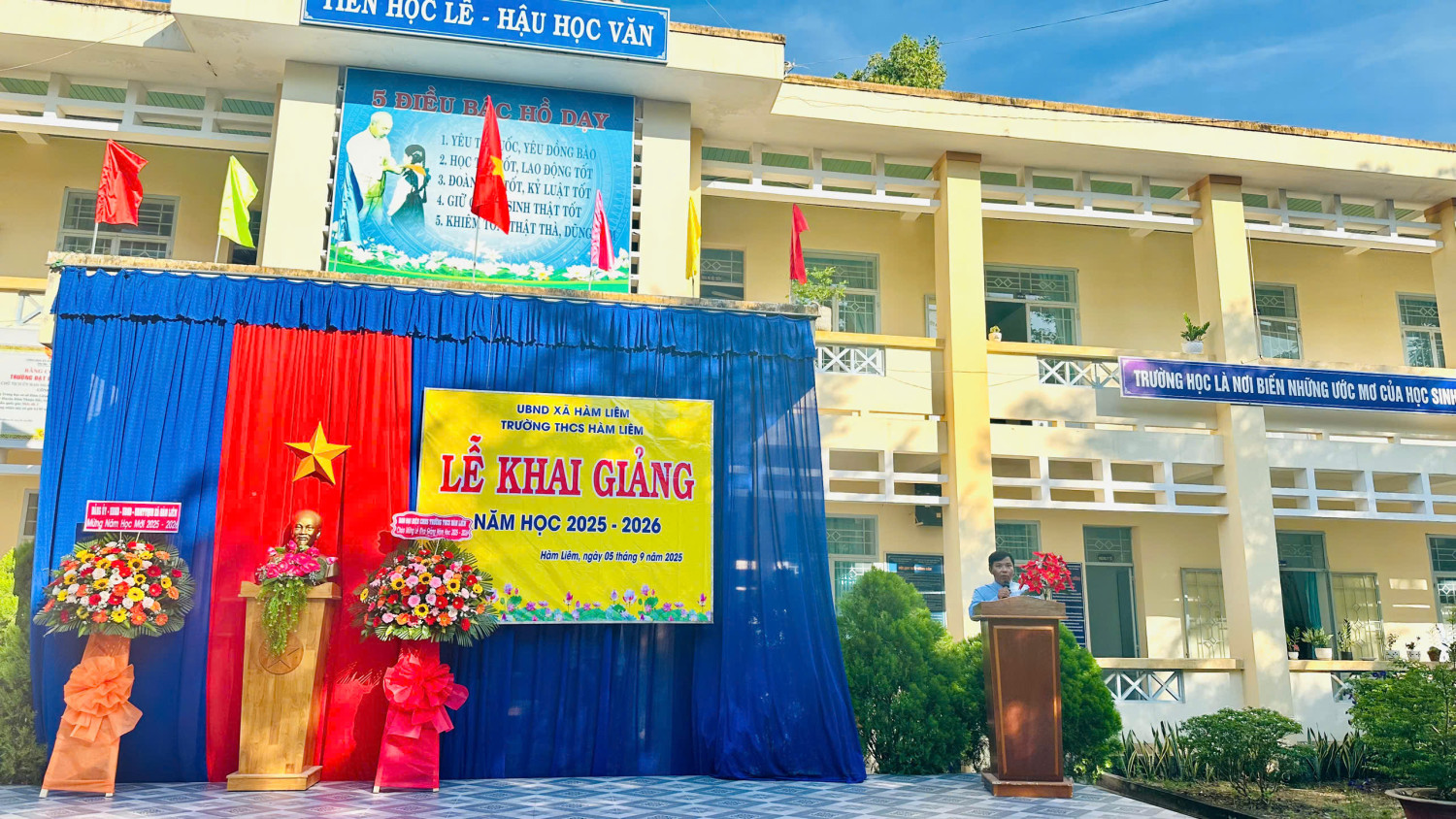 Lễ Khai giảng năm học 2025 – 2026 của Trường THCS Hàm Liêm đã diễn ra trong không khí trang trọng, vui tươi và đầy ý nghĩa. Buổi lễ không chỉ mở ra một năm học mới với nhiều kỳ vọng, mà còn tiếp thêm động lực để thầy và trò nhà trường quyết tâm thi đua dạy tốt – học tốt, rèn luyện chăm ngoan, phấn đấu đạt được nhiều thành tích cao hơn nữa. Tin tưởng rằng, với sự quan tâm của các cấp lãnh đạo, sự đồng hành của phụ huynh và sự nỗ lực của toàn thể cán bộ, giáo viên, học sinh, Trường THCS Hàm Liêm sẽ gặt hái nhiều thành công trong năm học mới.