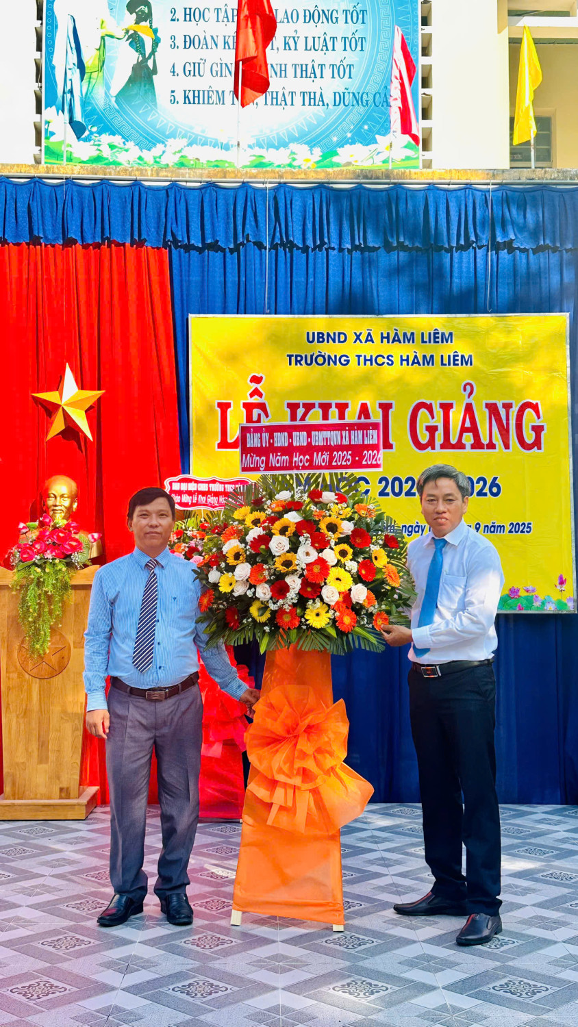 Sáng ngày 05/9/2025, Trường THCS Hàm Liêm (xã Hàm Liêm) đã long trọng tổ chức Lễ Khai giảng năm học 2025 – 2026 trong không khí hân hoan chào mừng 80 năm Cách mạng Tháng Tám, Quốc khánh 2/9 và 80 năm truyền thống ngành Giáo dục. Buổi lễ vinh dự đón tiếp Ộng Phan Minh Quảng – Phó Bí thư Thường trực Đảng ủy xã Hàm Liêm, Ông Ung Thanh Khải, chánh văn phòng Đảng ùy xã Hàm Liêm, cùng đại diện lãnh đạo địa phương, Ban đại diện cha mẹ học sinh, cùng toàn thể cán bộ, giáo viên, nhân viên, và hơn 780 em học sinh về tham dự.