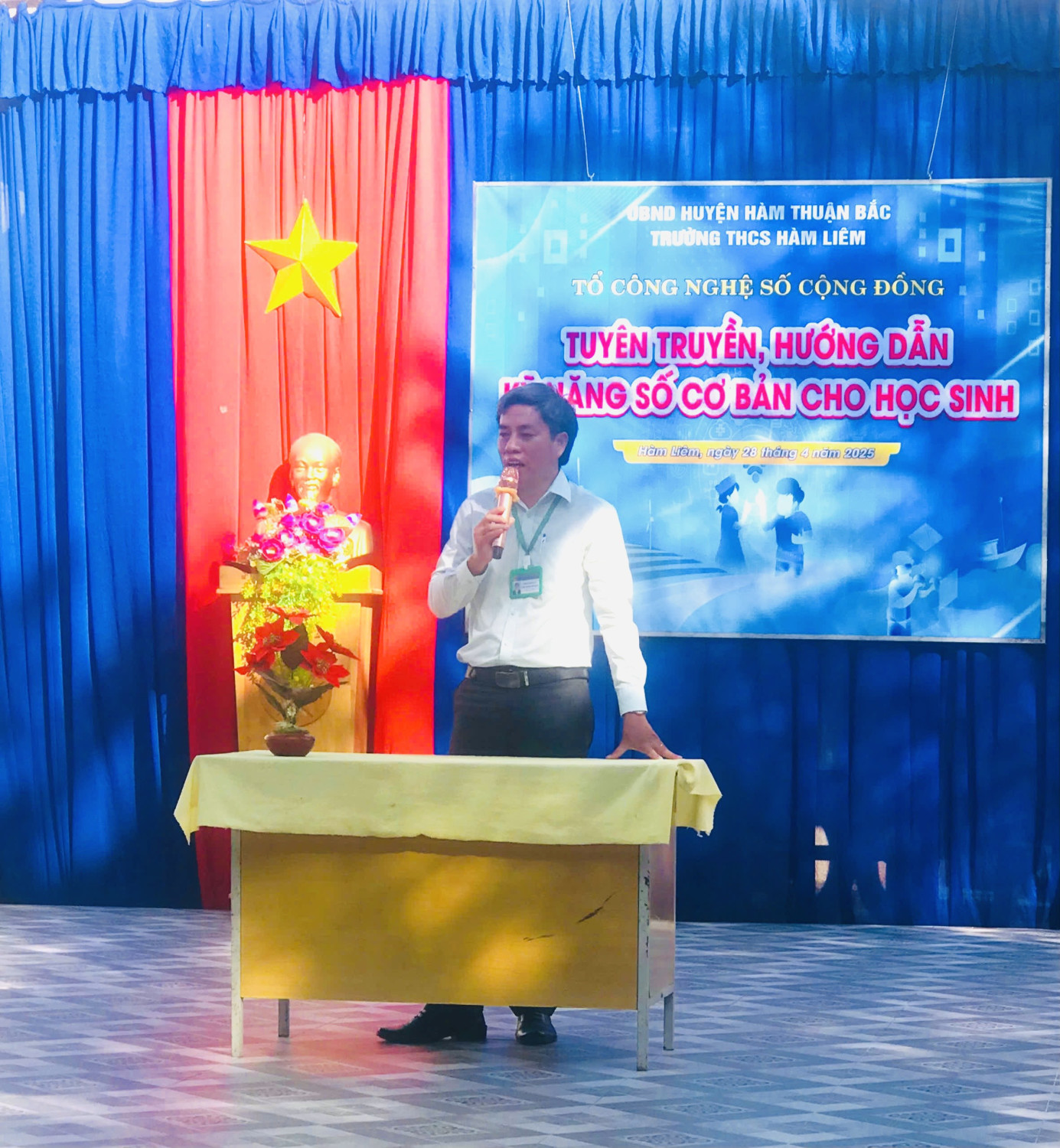 Ngày 28/4/2025, Trường THCS Hàm Liêm tổ chức hoạt động ngoại khoá Hướng dẫn, tuyên truyền Kỹ năng số cơ bản cho học sinh, nhằm tăng cường công tác tuyên truyền, hỗ trợ học sinh nâng cao nhận thức và kỹ năng số cơ bản, góp phần hình thành thói quen sử dụng các nền tảng số một cách an toàn, hiệu quả trong học tập và cuộc sống. Đồng thời tạo điều kiện để học sinh tiếp cận, khai thác và ứng dụng hiệu quả các công nghệ số, từng bước thích ứng với xu thế chuyển đổi số trong giáo dục.