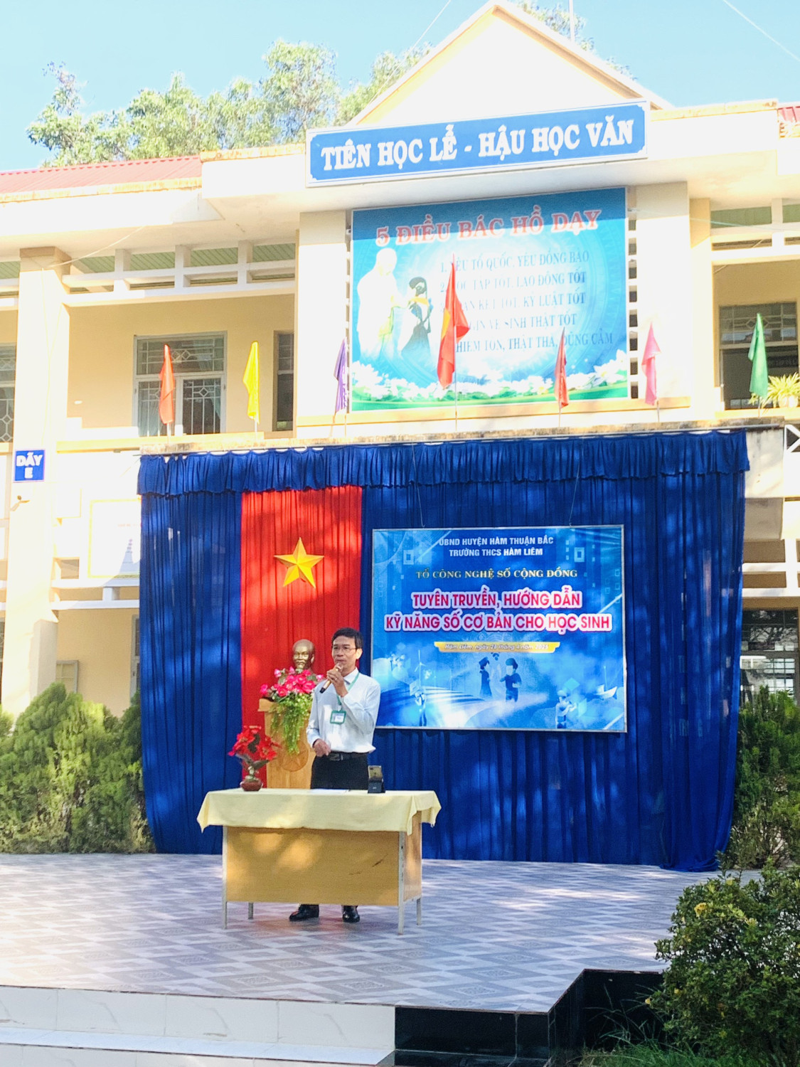 Thầy Lương Thanh Dũng - PHT nhà trường- giới thiệu về lợi ích của việc thực hiện Công nghệ số trong đời sống